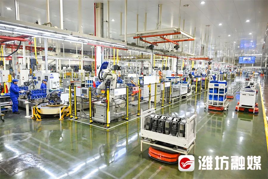 在潍柴智能化装配产线,人机配合,井然有序。