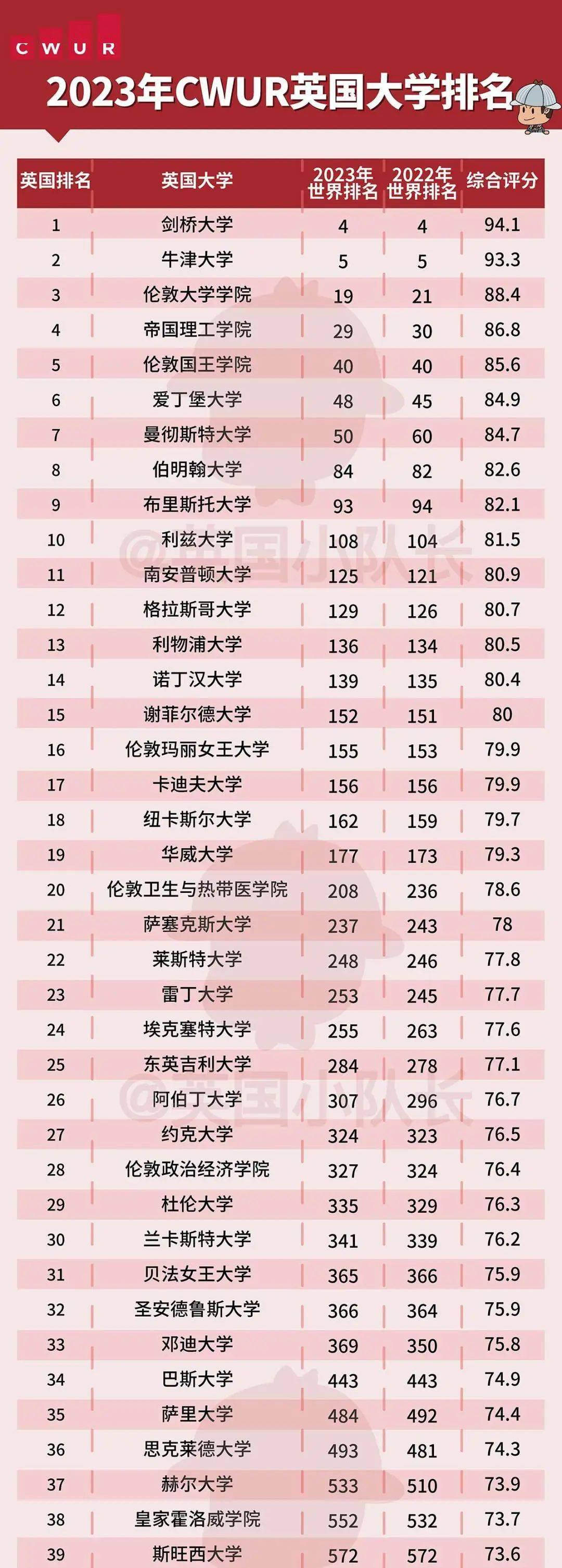 教育:186 就业能力:430 师资:78 研究:99本科在🇬🇧英国前30大学就读,硕士想申G5,可以找队长帮你哦