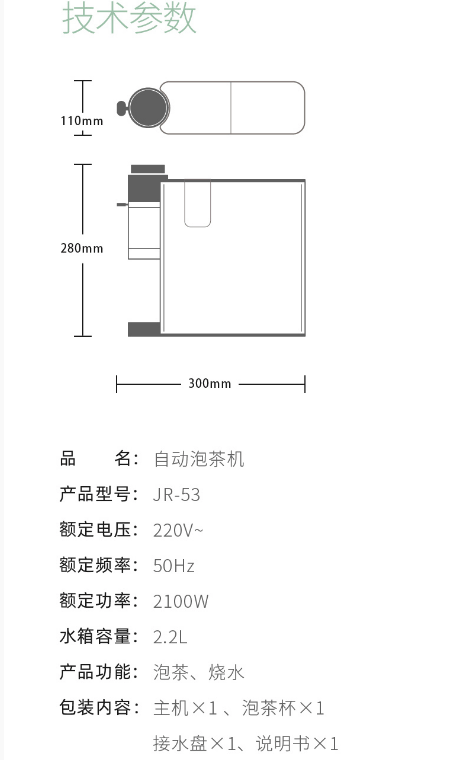 泡茶机的外观采用了超薄设计,身材和两本书差不多厚,不会过多占据桌面空间。