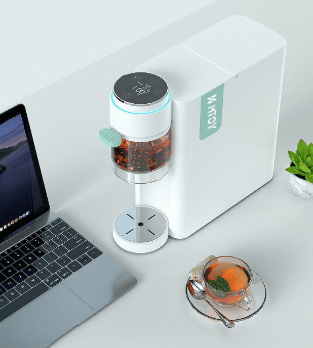 选好所需模式后,按下出水键,茶饮机就开始烧水,准备萃茶了。泡茶结束,茶汤会自动流入杯中,整个过程一气呵成。