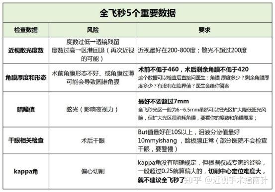 7、全飞秒检查指标真心建议大家做全飞秒前一定要了解清楚自己眼睛情况,了解清楚可能有 哪些风险,术前怎样尽可能避免,最严谨的就是术前检查报告,唯一决定你能不能做近视手术、适合哪种手术的,术前要了解清楚检查数据。(详细术前检查可以筛选出你适不适合做近视手术,不是你的圈子别硬融,不适合做近视手术咱也别硬做)