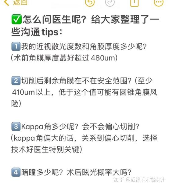 为了不必要的风险,大家也可以多去几家靠谱医院检查,遮掩个也可以避免了漏查,同时可以多听几个医生的建议。大多数医生都比较忙,有适合就是看一样报告就告诉你做什么手术,这样是不是心里就有点没底?了解一下这些数据,你也能看懂你的报告,也能知道自己适合哪一种近视手术。不过有的医院不能带走检查单,做完术前检查可以拍照留底,以防检查时没有了解清楚自己的眼部情况,回来可找相关专业人士帮忙看。还没有检查的近视朋友可以先收藏,后面拿自己的检查报告对比看。