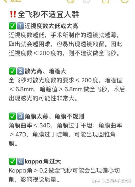https://xg.zhihu.com/plugin/d128fe56881fa5101e8786de2eb96c9d?BIZ=ECOMMERCE4、全飞秒优缺点优点:恢复快、切口小、微创、术后角膜稳定、适合喜欢运动的人;没有角膜瓣,术后稳定性强;术后干眼少,舒适度佳;