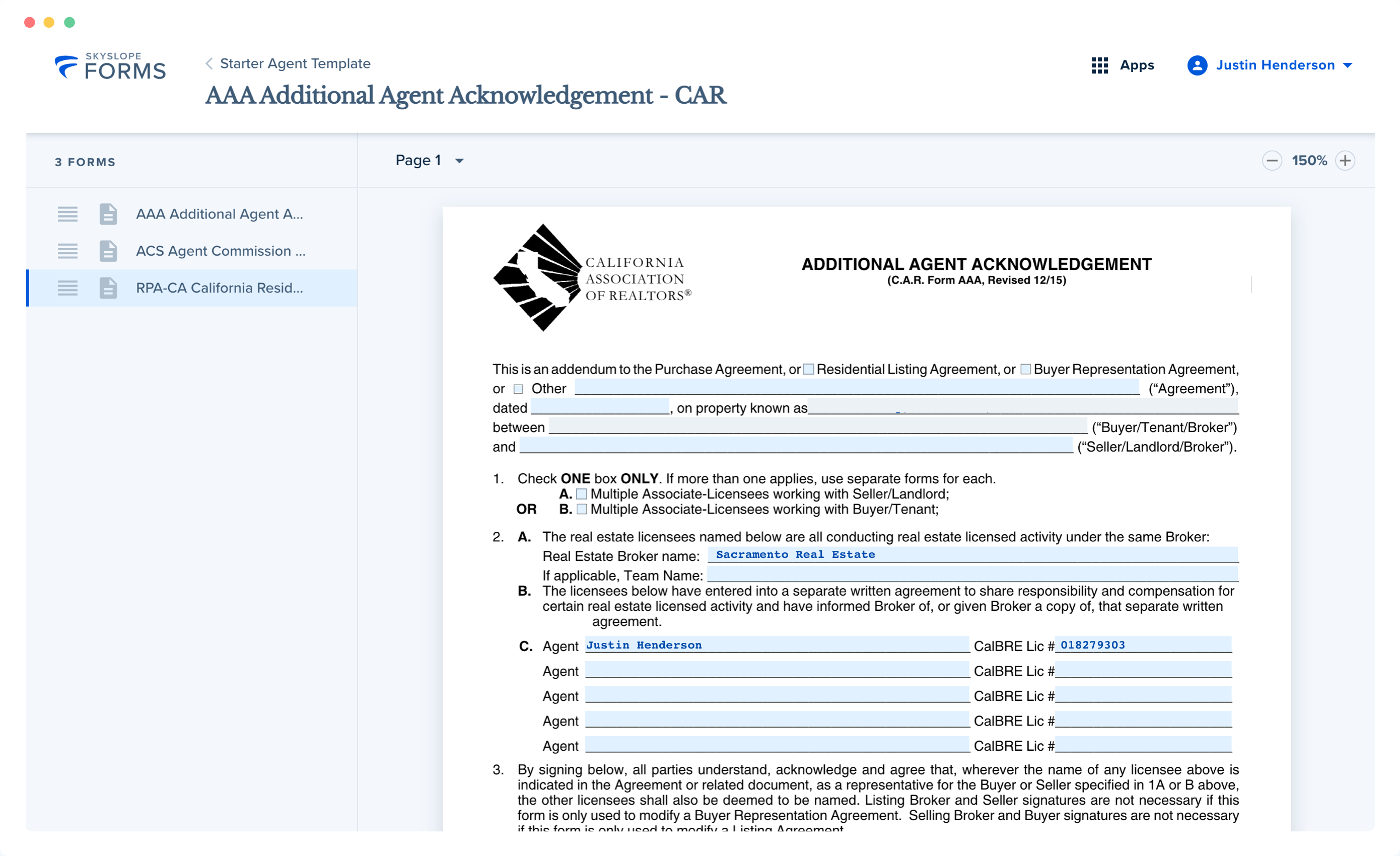 Enter client info including dates, contacts, and property details and it will automatically populate across forms.