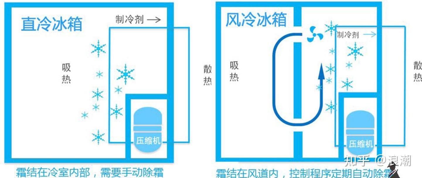 直冷直冷冰箱借助蒸发器的热量交换来降低冰箱内的温度,优点制造成本低一些,冰箱价格低,维护成本低,冰箱内湿度控制也比风冷冰箱好一些,缺点就是有制冷死角,而且容易结霜,需要经常手动除霜。