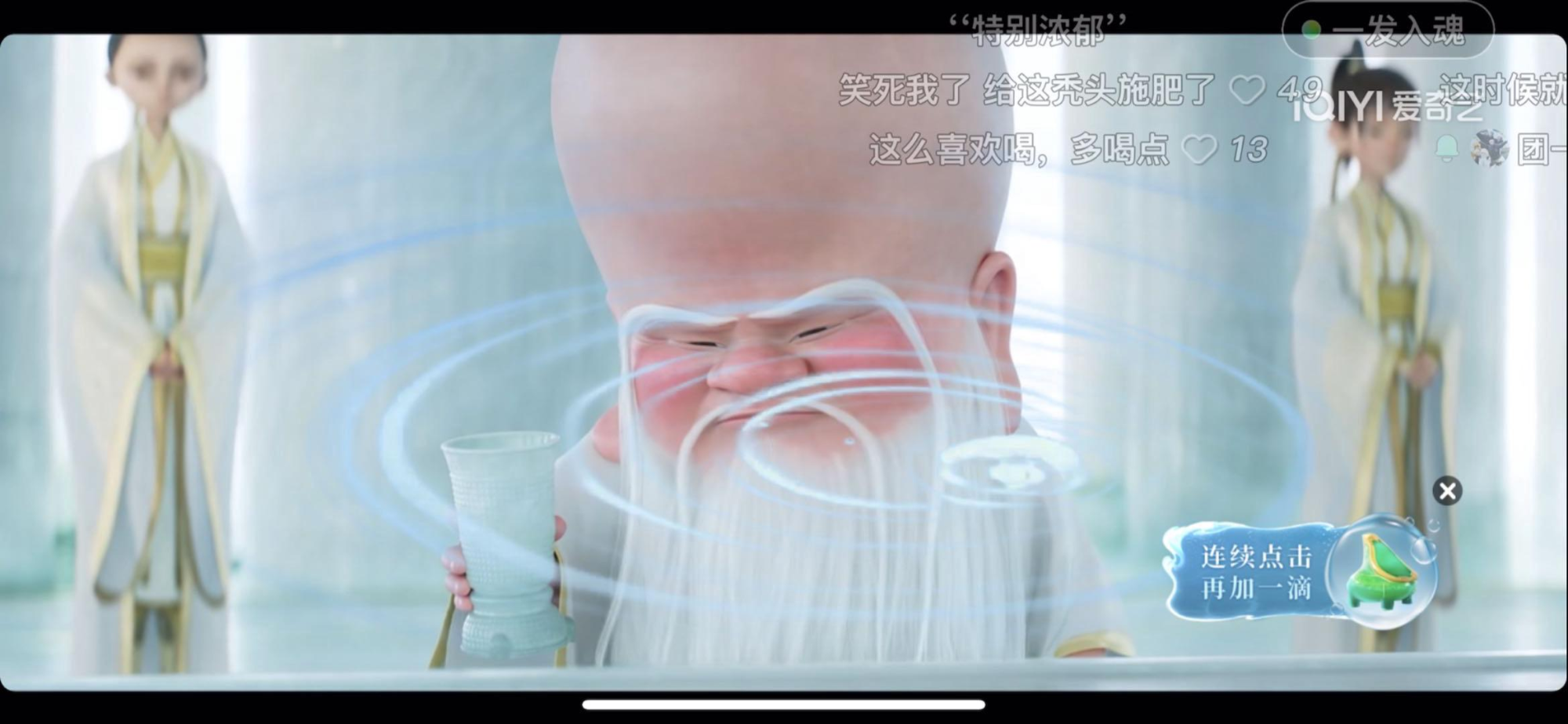 此次《哪吒2》上线,爱奇艺特别在手机端推出一系列趣味弹幕特效及玩法,为VIP会员打造沉浸式互动体验。送“莲藕”助力哪吒敖丙重塑肉身;向无量仙翁杯中“加一滴”,冲他脸上“给一拳”瞬间释放压力;还有哪吒、敖丙、申公豹裂空爪等专属弹幕增加氛围感;更有点击助力破鼎和对决、金句特效字幕、互动投票等玩法,让观众与哪吒并肩战斗,沉浸感十足。