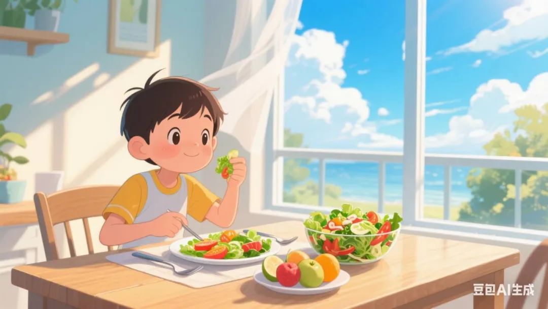 晚餐:绿色蔬菜(西兰花/菠菜)为主,少油少盐