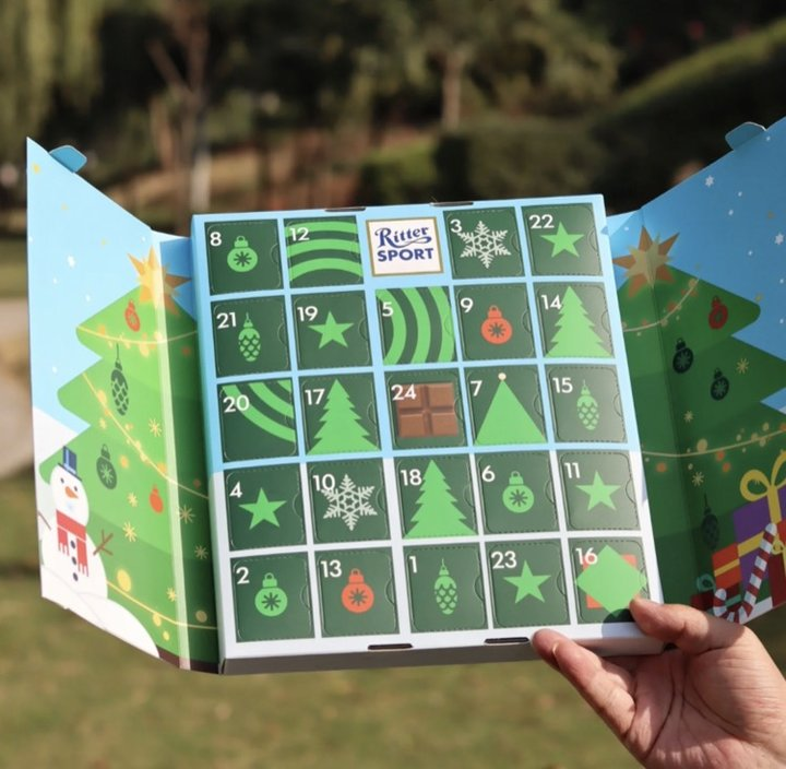 9、RitterSport 牛奶巧克力圣诞礼盒这款高颜值的盲盒巧克力有着各种丰富的口味选择,不仅好吃,还很有趣!
