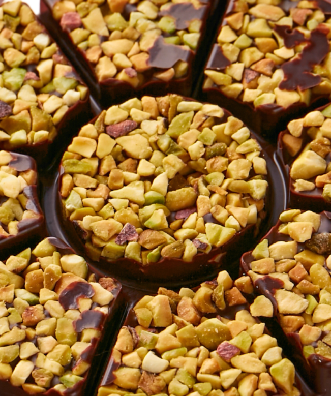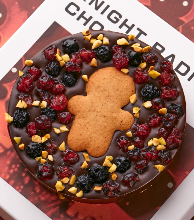 巧克力里面加入了蓝莓干、蔓越莓干和开心果,带来清新甜蜜的口感,为圣诞节增添了特别的味道。