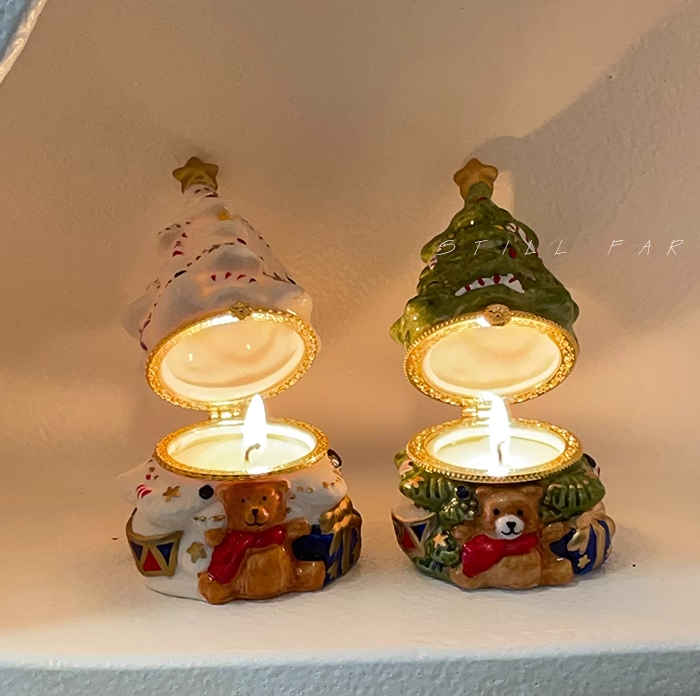 可以把圣诞树打开后放上蜡烛点燃,看起来非常童话般和森林风格。点燃蜡烛后,也可以替换成茶杯蜡烛,或者将其作为收纳盒使用。