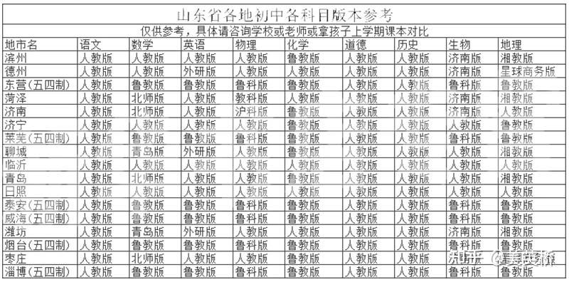 济南市、青岛市、淄博市、枣庄市、东营市、烟台市、潍坊市、济宁市、泰安市、威海市、日照市、临沂市、德州市、聊城市、滨州市、菏泽市。这些地区使用什么初中课本?
