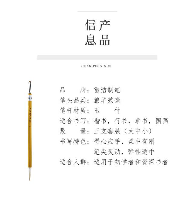 其实,兼毫是一个很庞大的家族,不同的混合比例,会写出不同的效果。当然对于很多初学者来说,混合比例均不在考察范围内,实用顺手才是硬道理!