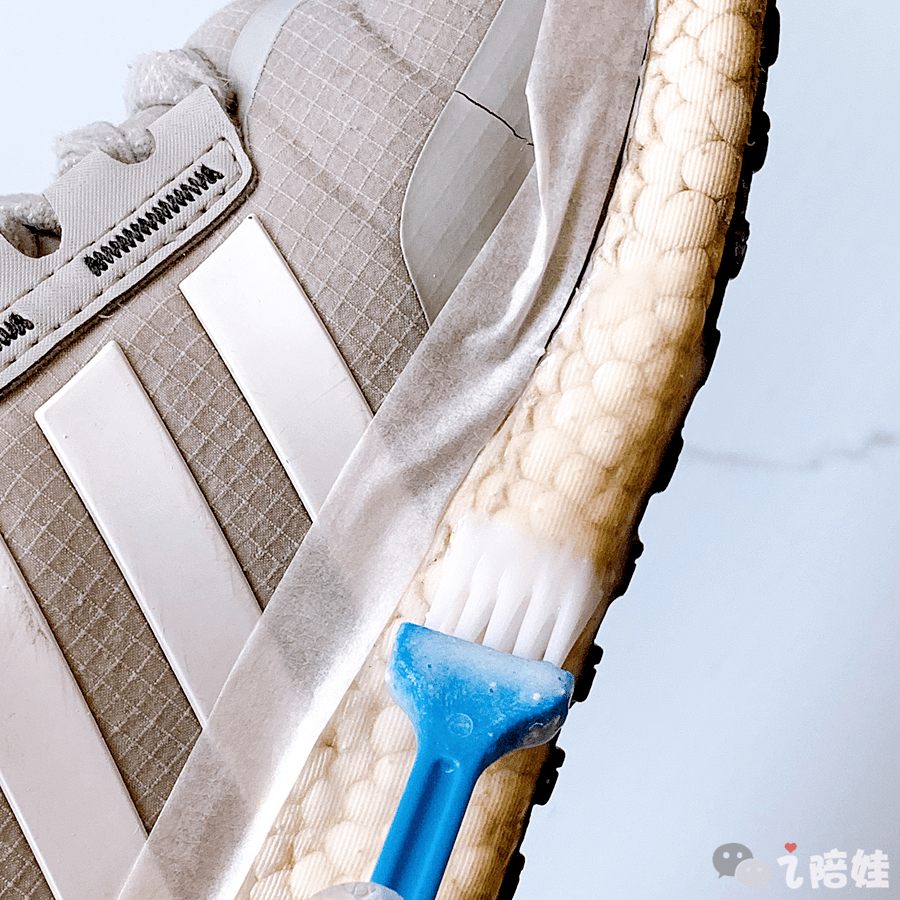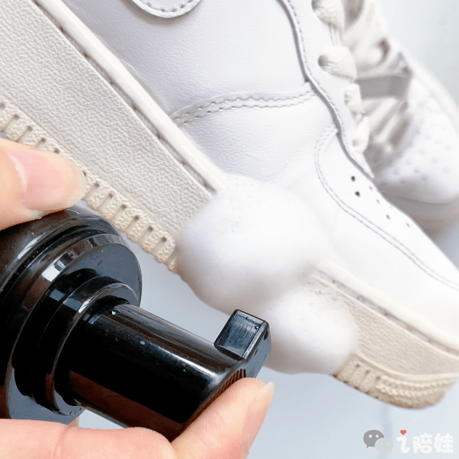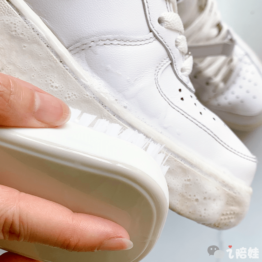 另外,如果遇到比较顽固的污垢,也可以用鞋刷沾免洗清洁泡沫单独刷。