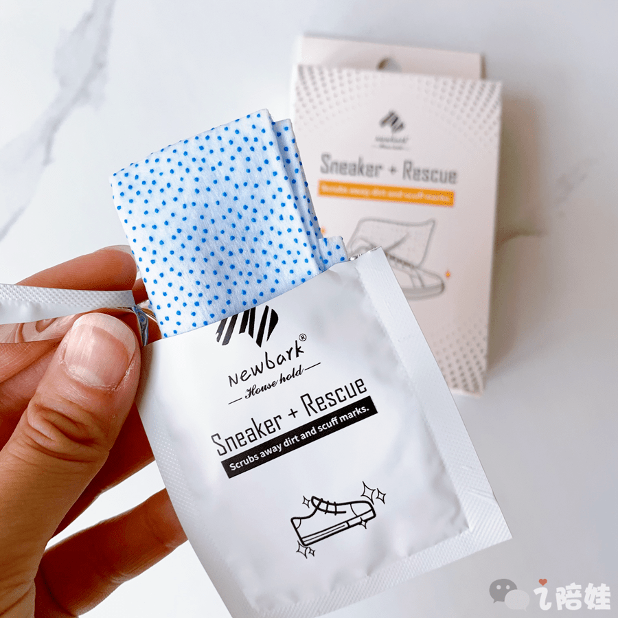 而且,还是难得的独立包装,出门带一个特别方便。吃饭,菜掉鞋上了,还是溅到泥点子了,或者土太多了,随手就可以拿出来擦,避免污垢随着时间越来越长,渗入到深层,清洁起来就费劲了。