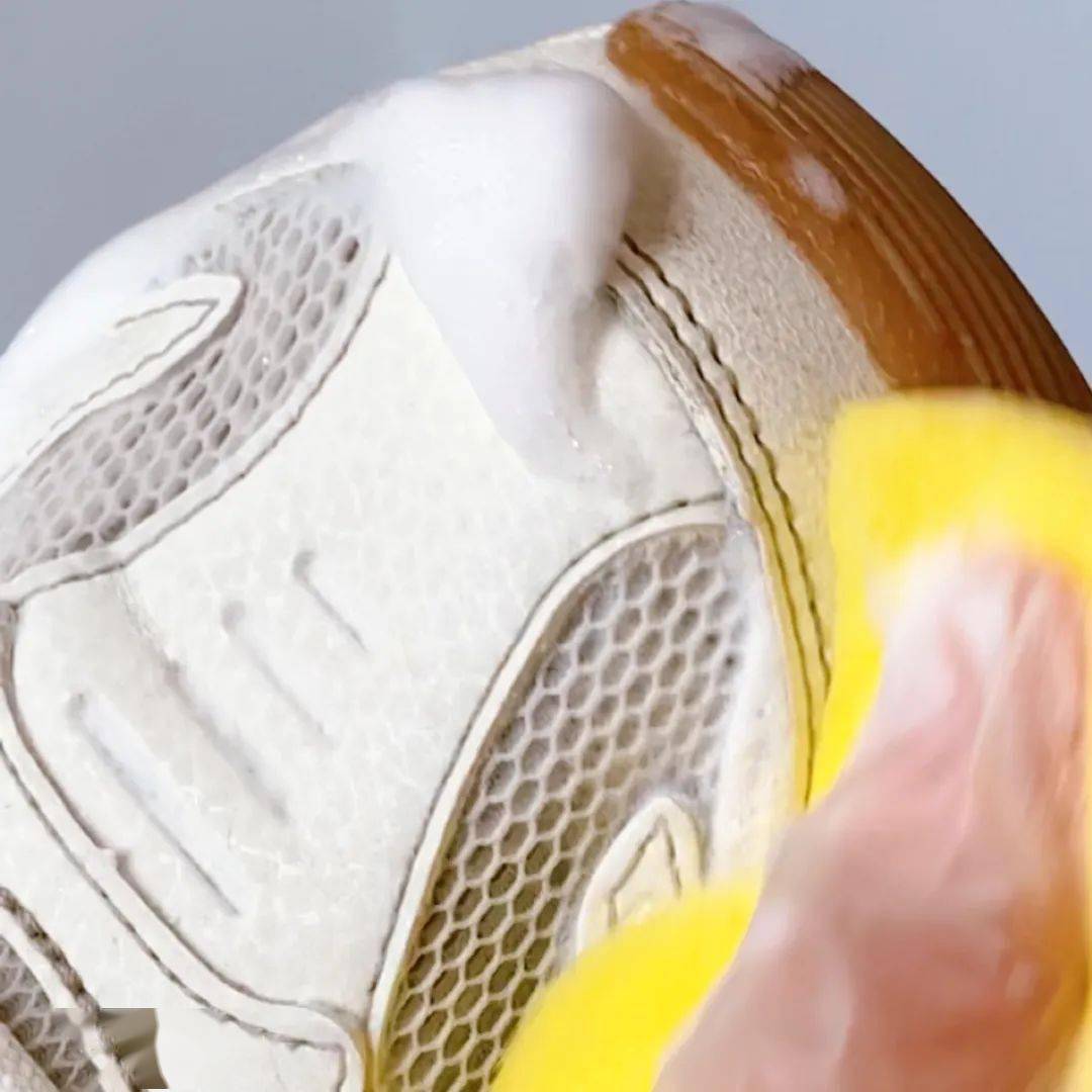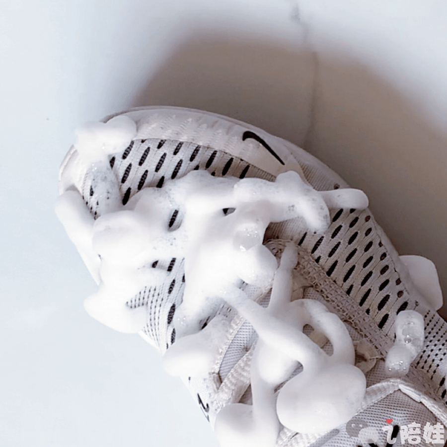 像网面的鞋,是夏天的必备,但鞋面薄,又有洞,比较娇气,用刷子很容易刷坏鞋面,会让鞋面起毛。所以,我通常都是挤上免洗的清洁泡沫,然后用海绵擦。