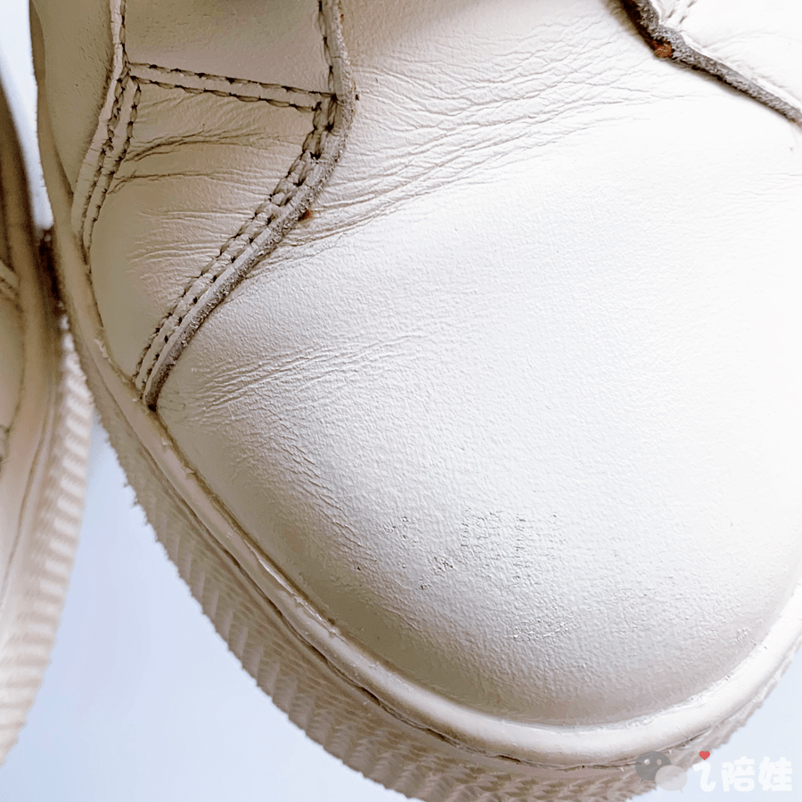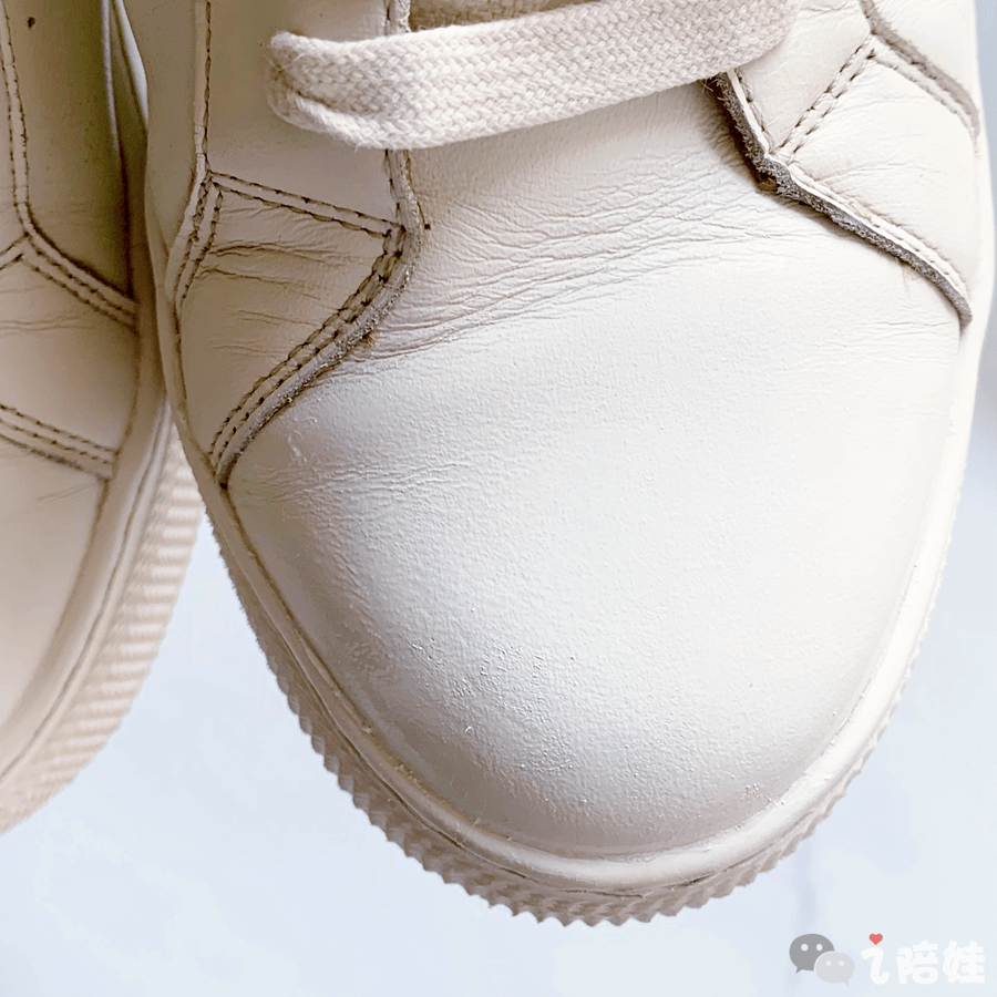 还可以用擦鞋专用的“橡皮”擦掉脏的地方(其实孩子用的橡皮也不是不行,我试了下,就是比较软,效果没有专门用来擦鞋的好)。