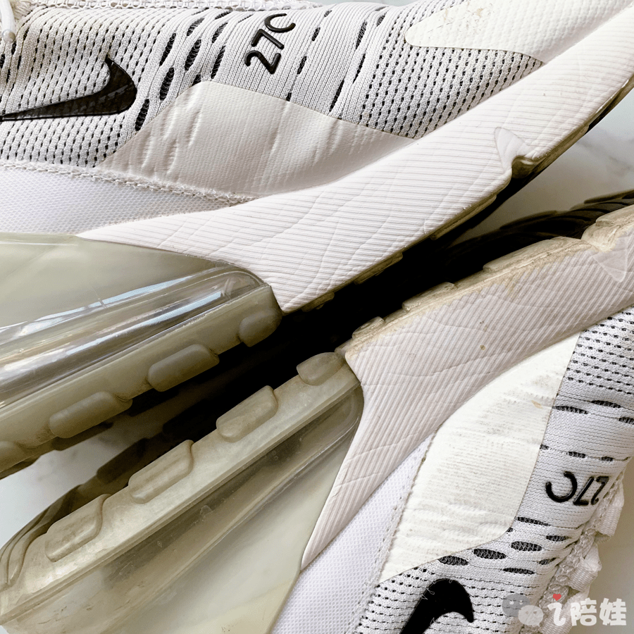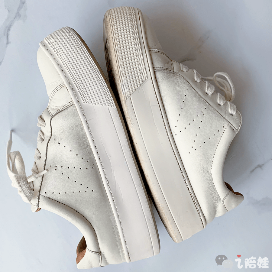 很多小白鞋和白色的鞋跟部分,都会随着穿的时间,有不同程度的氧化发黄,尤其是用水浸泡清洗过的,晾干的过程如果没有做到位,残留的水和清洁液比较多,容易洗完就黄。
