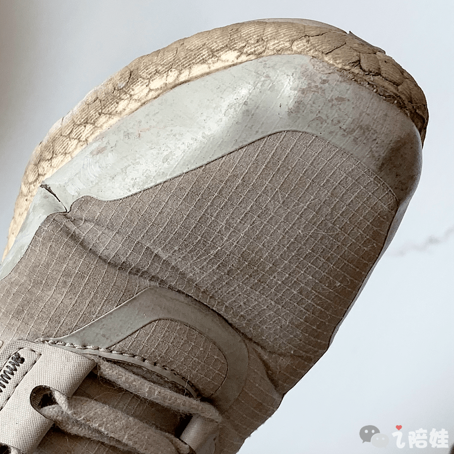 但由于时间太久,脏污已经充分融入到鞋子里了,无论什么方法都无法把它洗出原来的样子了。尤其是鞋底的脏和黄,在涂了增白剂和做了氧化还原处理后,仍旧不能恢复,还是有一些脏污和黄渍。
