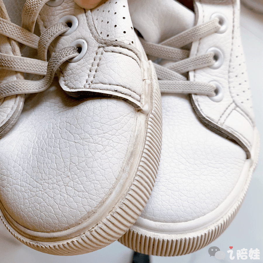 像芊芊穿得有点脏的那双小白鞋,用擦鞋巾来回多擦几遍,就能擦得很干净。