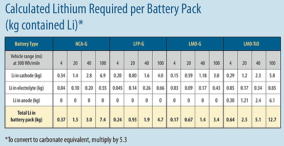 目前Model S 的电池是3.1Ah/18650。也就是上表中的第二种。能量密度=252Wh/Kg,能量=11.2Wh,则电池单体重量=0.044Kg=44g松下对自己产品有介绍,18650 电池中正极材料重量占比20~35%,由于3.1Ah 的电池属于容量较大的,所以假设其正极材料在30%左右。则正极材料的重量在15克左右。 第二步:测算单体NCA对碳酸锂的需求量:NCA化学式:LiNixCoyMn1-x-yO2,其中最常见的是LiNi0.8Co0.15Al0.05O2,其分子量为7+59×0.8+59×0.15+27×0.05+32 = 96.4,碳酸锂分子式为Li2CO3,分子量7×2+12+16×3=74,按锂元素一比一,两者重量比是74 : (96.4×2) =0.38 : 1。可知其中1 克锂钴镍铝三元正极材料需要0.38 克碳酸锂。则生产一节18650 钴镍铝三元电池正极材料需要15*0.38 = 5.7g碳酸锂。 第三步:测算一辆Model S对碳酸锂的需求量:M o d e l S 使用了多少颗1 8 6 5 0 电芯?85000Wh ÷ 11.2 Wh = 7589,为了保持每个brick电芯数目的一致,Model S 实际上一共使用了11 × 9 × 77 = 7623颗松下18650型 3.1Ah高容量NCA电芯(数据来源:网页链接)折合碳酸锂当量=7623*5.7/1000=43.5KG≈45KG 第四步:计算单位Kwh消耗碳酸锂的量:45/85=0.53Kg/Kwh(此为正极需求带动)用Argonne(美国阿贡国家实验室(Argonne National Laboratory,简称ANL)是美国政府最早建立的国家实验室,也是美国最大的科学与工程研究实验室之一——在美国中西部为最大)的数据测算: