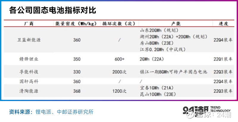 在产业化布局方面,比如据24潮团队统计,仅辉能科技、卫蓝新能源、赣锋锂业、清陶能源、太蓝新能源等5家企业固态电池产能规划合计已达256.2GWh。