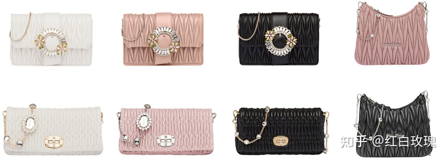 Miu Lady是经典包型,宝石环绕着黄铜搭扣凸显奢华气质,华丽丽中带着一丝巴洛克风。Crystai系列适合日常,水晶搭扣和珠宝链装饰,自然光下带来Blingbling的闪耀感.