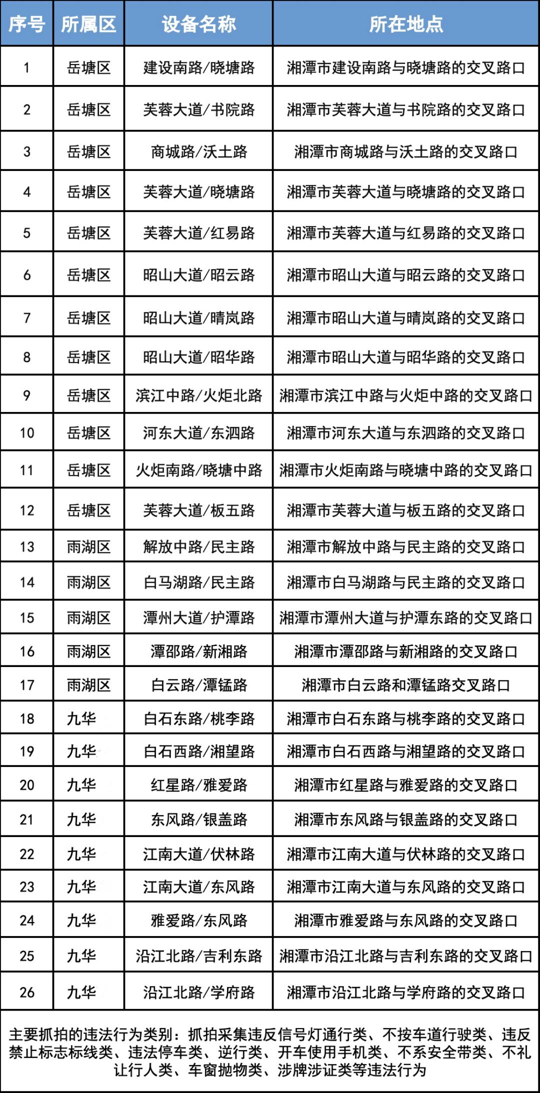 另外,湘潭市在相应的建设项目中新建了一批电子警察设备,对于新启用的设备也需要公示。