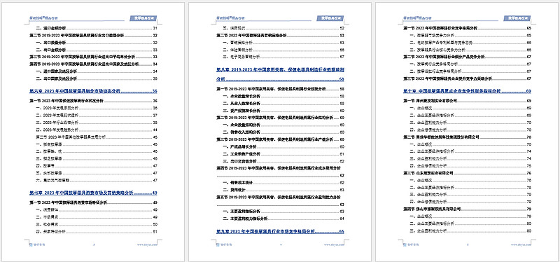 《报告》自2017年开始出版,每年一版,目前已连续8年。智研咨询研究团队持续跟进按摩器具发展历程,总结现状、深化研究、探索规律,《报告》总计12章,从发展综述、全球现状、市场供需、进出口分析、细分市场、营销策略、竞争格局、重点企业、发展趋势、投资机会等多个方面,通过详实的数据,全面总结和回顾了2023年按摩器具行业的新趋向、新亮点,同时对现存问题进行了深度思考,为下一步按摩器具行业高质量发展提出了一系列有益的建议和未来的展望。