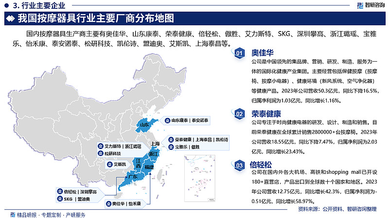 智研咨询组织编撰的《2024-2030年中国按摩器具行业市场发展调研及投资前景评估报告》(以下简称“《报告》”)是中国按摩器具领域的专业市场研究报告,是按摩器具行业发展忠实的记录者和见证者。旨在为中国按摩器具行业生产厂家、政府机构、业界专家了解和掌握中国按摩器具发展脉络提供全面参考。