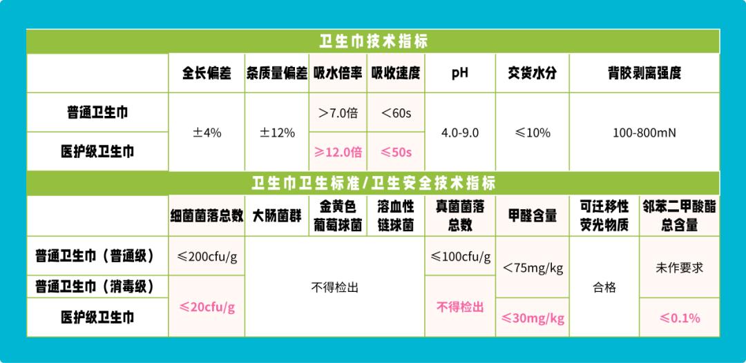 而在普通卫生巾中,消毒级的卫生巾标准要比普通级的更严格一些。
