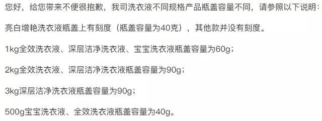 按瓶盖来算的话,确实没法算,看下某洗衣液品牌的官方回答你就知道为什么了:
