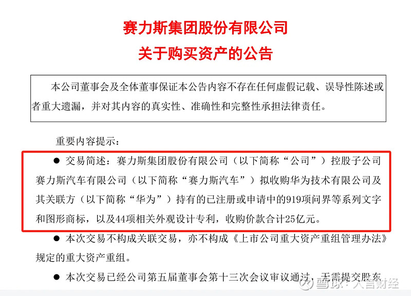 用直白点的话来说,华为将问界的商标以25亿元的价格转让给了塞力斯。