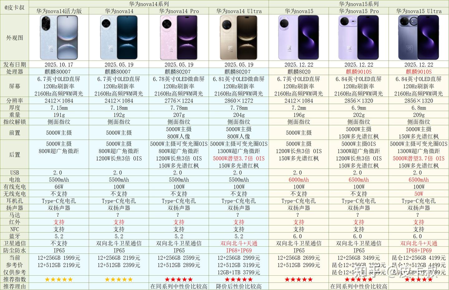 近期更新:已更新12月22日发布的华为nova15系列。已更新11月25日发布的华为Mate80系列。