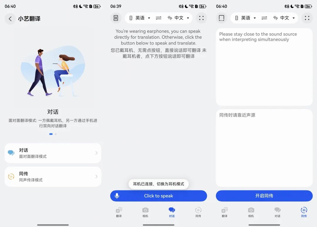 耳机一共提供了两种翻译方式,面对面翻译需要你跟对面一人一机,比如你戴耳机对方拿手机,你俩对话内容以及翻译会显示在手机上,耳机甚至还能模拟说话人声音进行播报。