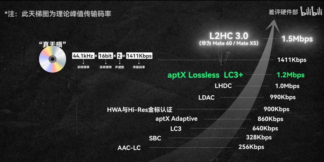 哪怕是稍微 “ 厉害 ” 一点儿的高通 aptX Lossless,码率最高也只能达到 1.2 Mbps,距离真·无损还是差了点意思。