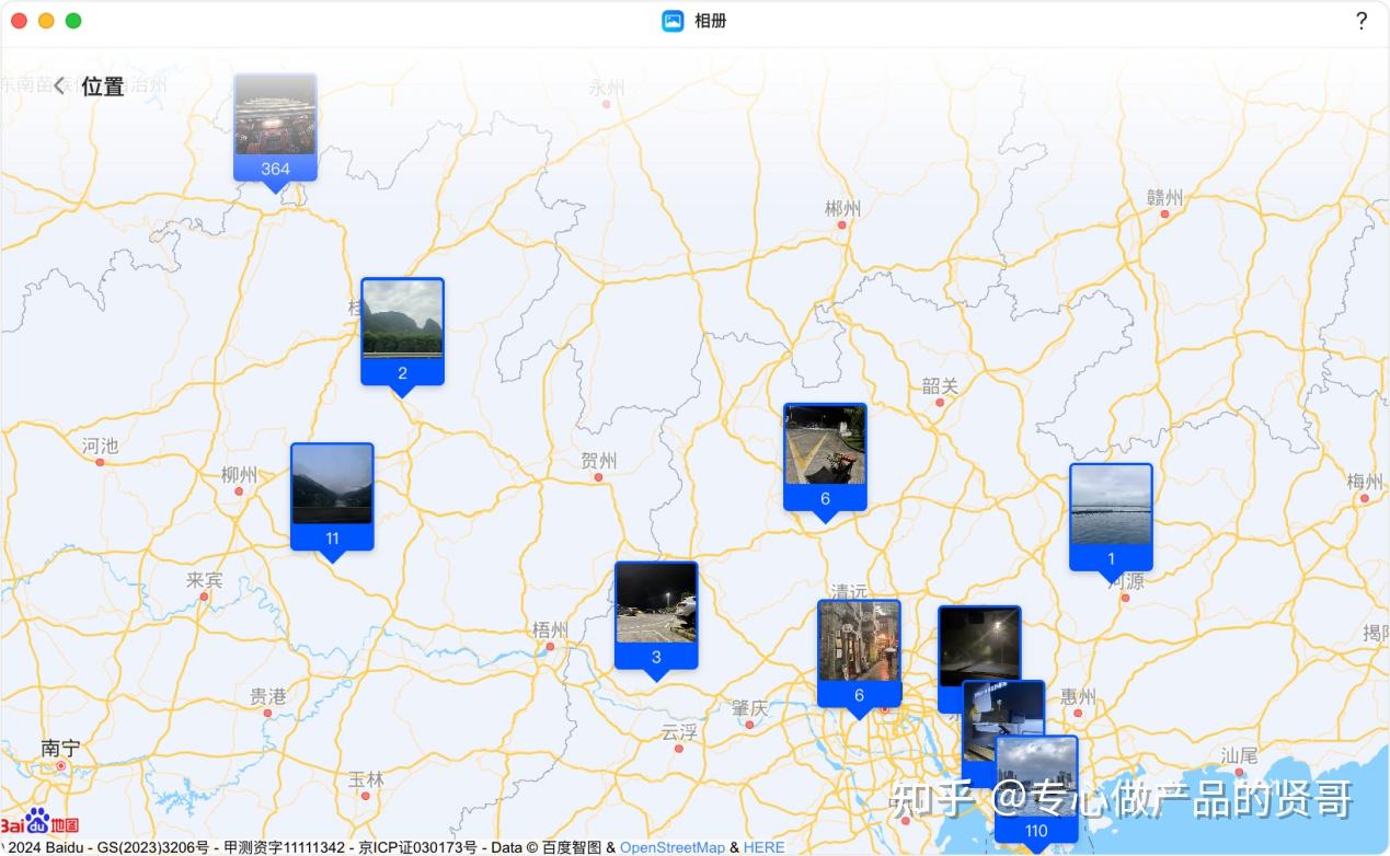 相册里的地图模式也很赞,能够根据照片拍摄的位置,自动分布在地图上。