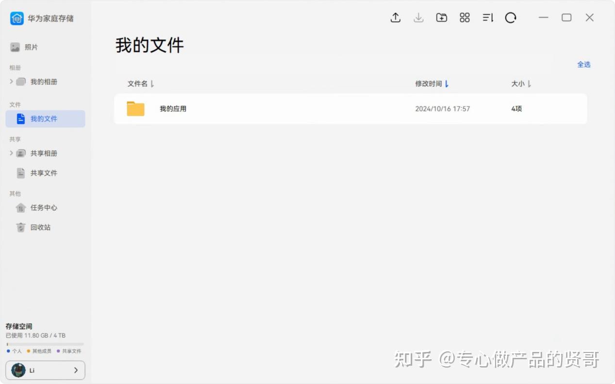 华为家庭存储操作界面整体看起来很清爽,就是与其他NAS相比功能比较少,有照片存储备份、文件共享、迅雷下载、百度网盘等基本功能,非常适用有轻量化存储需求的家庭用户。