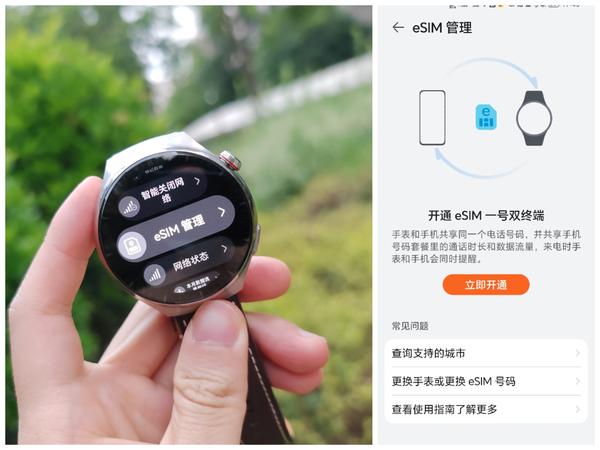 需要注意的是,开通ESIM功能以后,手表与手机共用一个手机号和网络流量,与手机断联的情况下,也可以独立拨打电话和上网。但是手表的eSIM会占用该手机卡下的一个副卡名额,此外,每个月收费10块钱,这个大家开通前要看一下自己手机号的运营商政策。