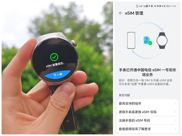 一号双终端开通也十分简单,通过华为运动健康App选择eSIM管理,点击开通eSIM。