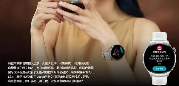 三、健康监测:高血糖风险评估+一键微体检健康监测功能一直是华为智能穿戴深耕的重点领域,这一次华为watch 4系列首发了2个全新的健康监测功能:高血糖风险评估+一键微体检。