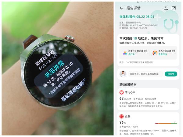 一键微体检测量结束以后,手表和手机App端会同时生成微体检报告。