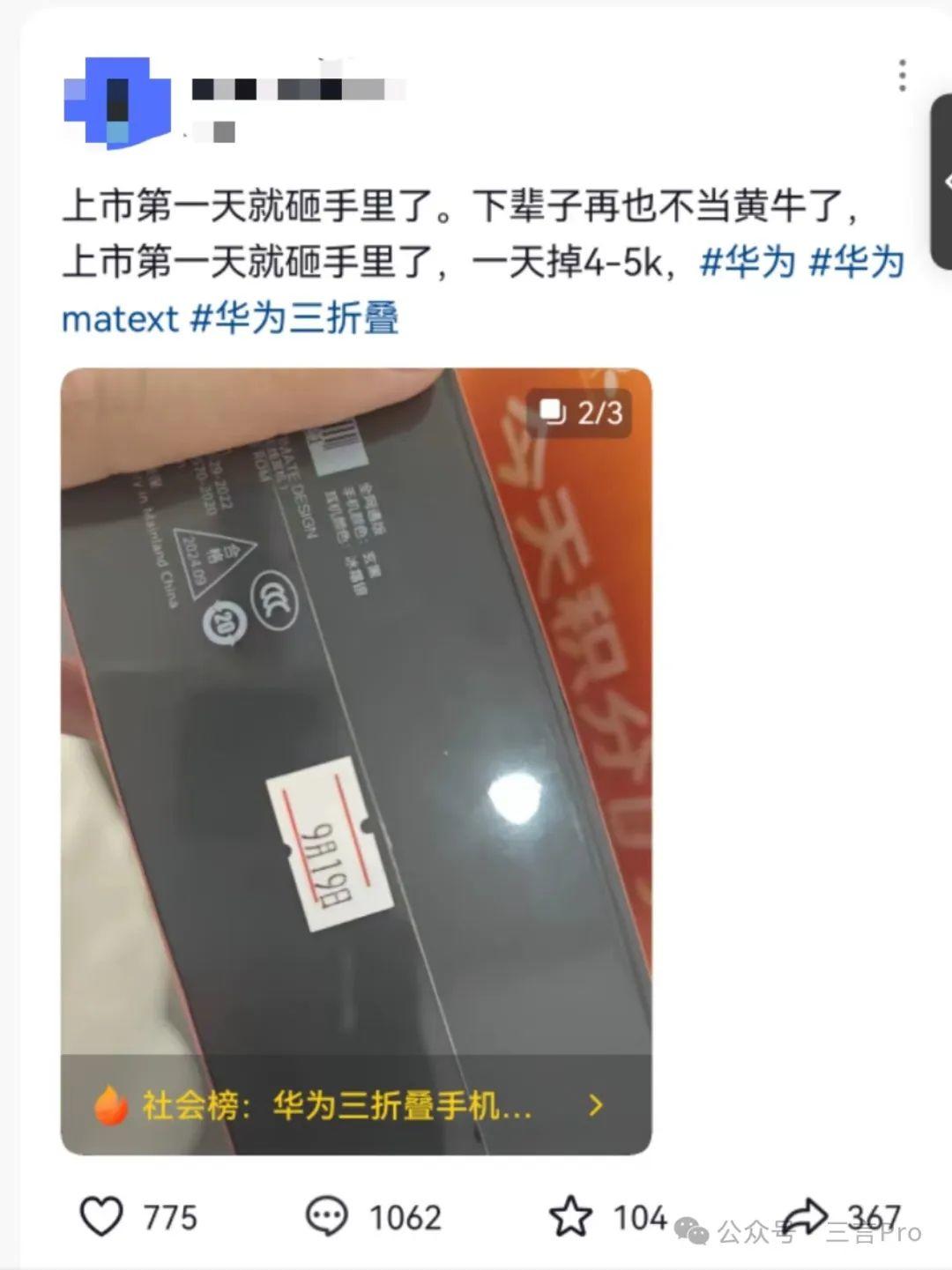 Mate XT二级市场价格暴跌