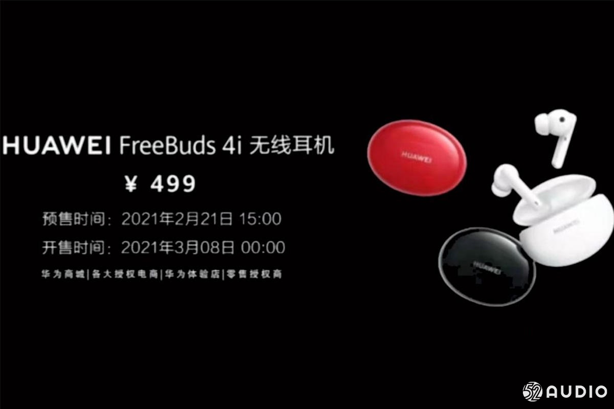 华为FreeBuds 4i 无线耳机售价499元,2021年2月21日已开启阶段,3月8日正式全网开售。预售期定金50元抵100元,相当于预售价449元,并且支持3期免息。拿到产品后晒单还可赢多款可爱的专属保护套。