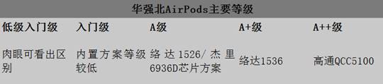 其实华强北AirPods主要可以分为低级入门级、入门级、A级、A+级、A++级等五个级别,不同级别的价格也不同。