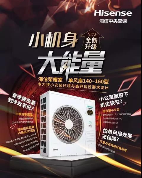 实际情况并非如此,海信荣耀家单风扇140-160型的风量与双风扇型相当,同时换热器升级至3排管,效率提升,让我们看到小机身也可以拥有大能量。