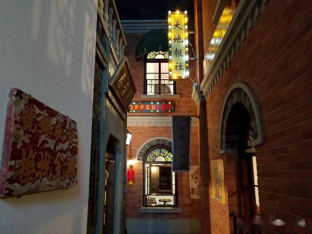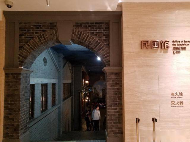 民国馆位于地下室,却造出了穿越时空的奇妙观感,头顶是“天空”,有蓝蓝的天空和团团的白云,民国时的老街道,冒着烟的老火车,大大小小的商铺,店铺内留声机等老摆件,置身其中,仿佛来到了那个风云跌宕的激情岁月。