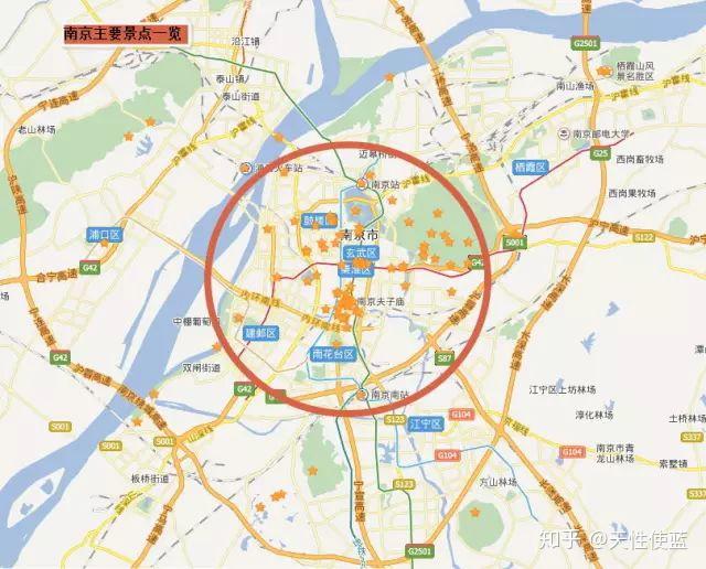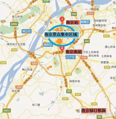 夫子庙3、穷游饮食预算穷游的话,我给大家的吃饭预算是简餐预算:早餐10元,中餐20元,晚餐20元。一天合计50元。喝鸭血粉丝汤、吃一些小吃足够,三天大概够吃9-10种。四、交通1、主要交通①到南京的交通方式,以火车和飞机为主。火车站主要为南京火车站和南京南站火车站。机场为南京禄口机场。②从下图可以看出,南京站和南京南站距离主要旅游区域都比较近,南京禄口机场距离南京主要景点区域比较远。③南京的市内交通,建议大家以地铁为主,辅以共享单车。