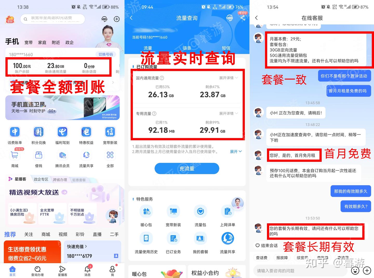 ②为什么激活后流量没有全部到账?一些套餐的首月流量或通话是按剩余天数折算,次月则全额到账。(例如30GB通用流量,在当月10号激活就会到账2/3,也就是20GB)