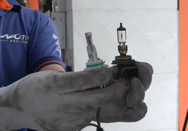 这个就是我们这次换装的LED灯和原车卤素灯的对比,差异还是比较明显的。