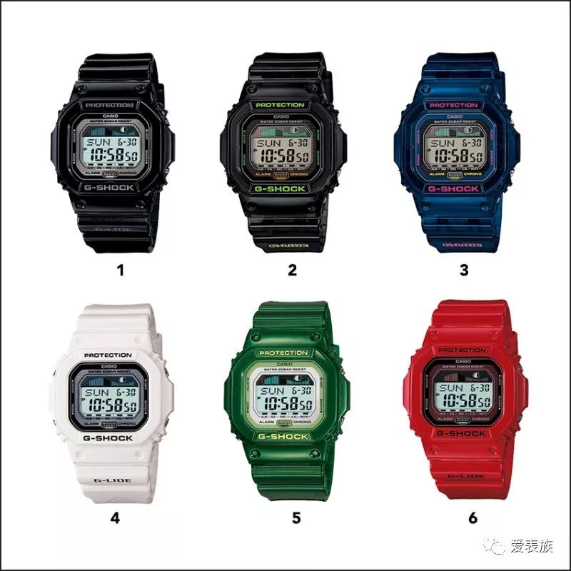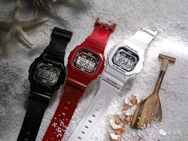 卡西欧G-Shock GLX-5600F-1 G-LIDE一款出色的冲浪者小方块手表,定价890元,配有潮汐以及月球图。是冲浪,钓鱼,划船和其他任何在海中进行的理想选择。其颜色比上面的单色图还要多。G-Lide系列的设计和表盘往往更“时髦”且色彩丰富。这些表款因其独特的外观而成为极好的入门款。